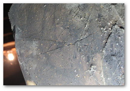 The same truss had plumb and level marks on the face of the cruck joint. These were from the construction phase and consist of fine vertical and horizontal lines