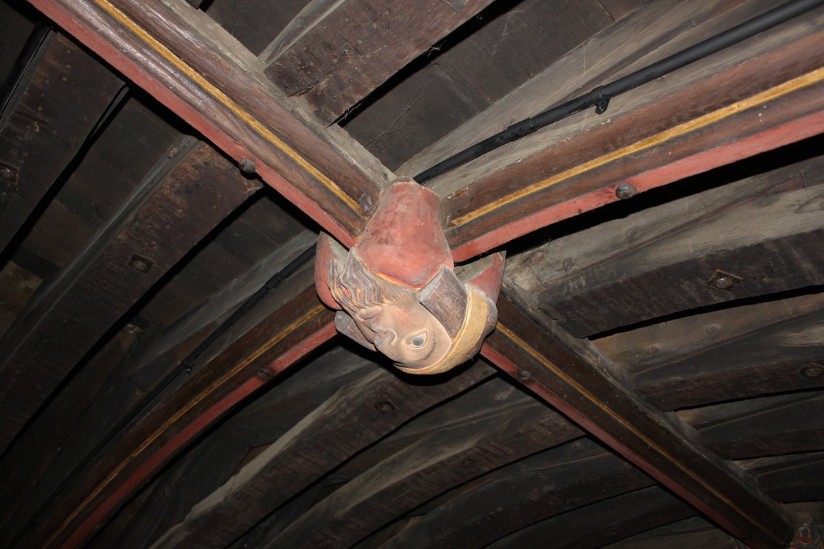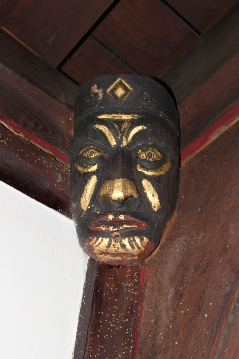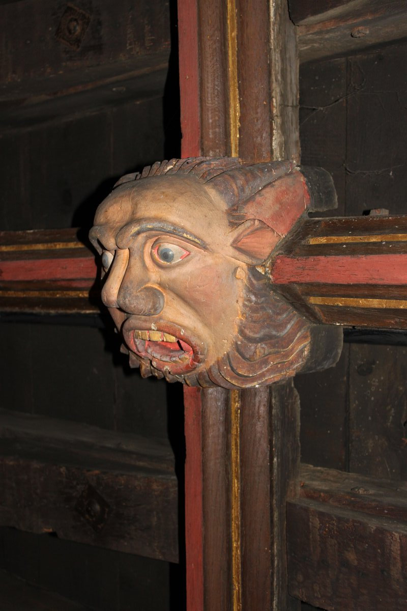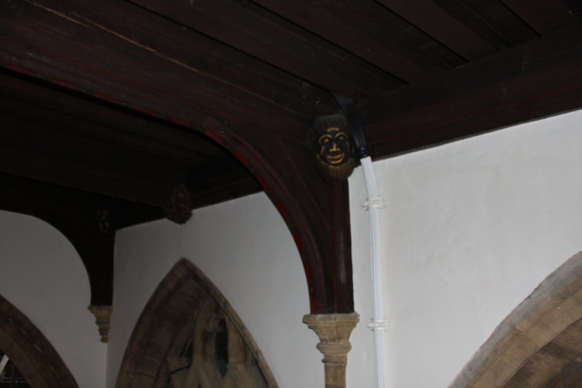During his SVBRG lecture Julian referred to the "African Masks" in St. Johns Church, Yeovil. Here are a few images taken when the scaffold was up for restoration.